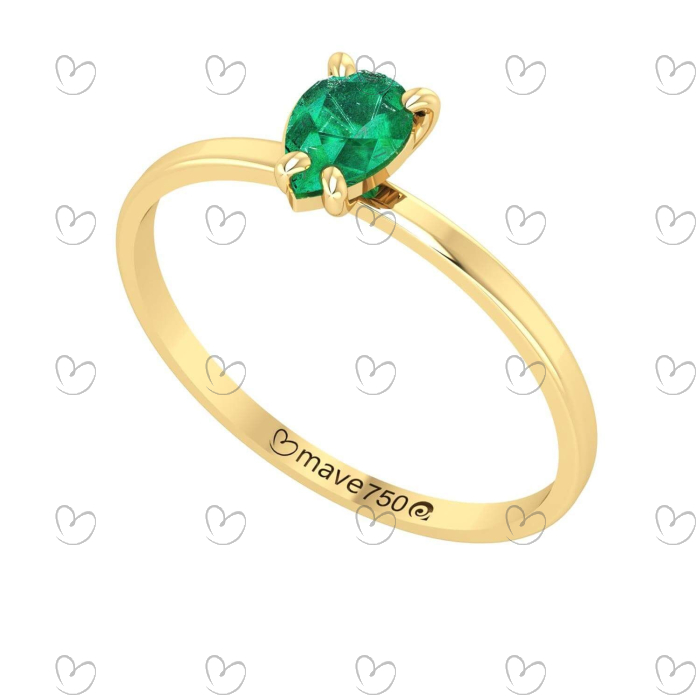 Anel Pedra Gota 4x6mm com Esmeralda Ouro 18k