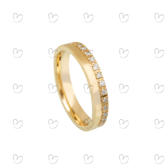 Aliança Quadrada 3.5mm Com Diamantes Ouro 18k