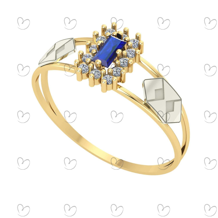 Anel de ouro amarelo formatura baguete curso de Administração, com símbolos em ouro branco.