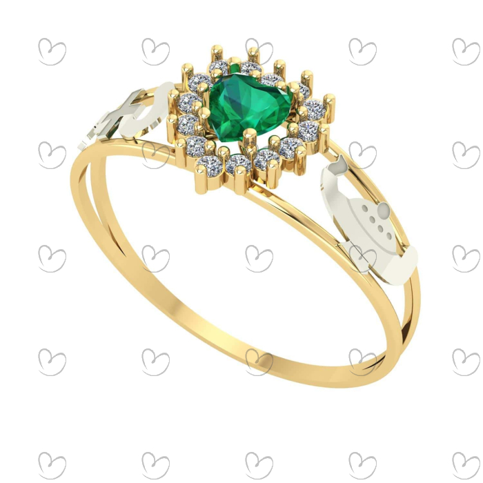 Anel de ouro amarelo de Enfermagem coração pequeno, com símbolos em ouro branco.