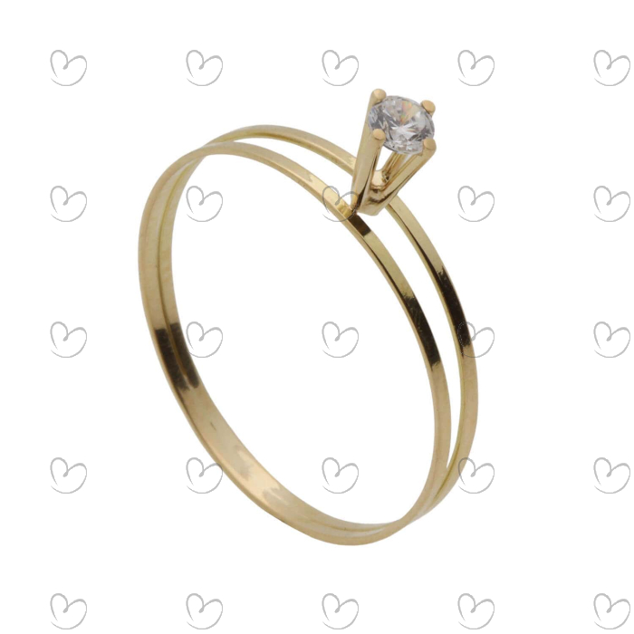 Anel Solitário com Zircônia Aro Duplo 3mm Ouro 18k