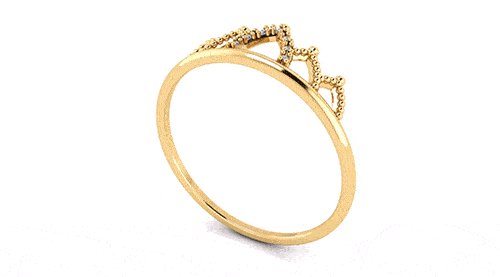 Anel em ouro branco coroa vazado com pedras de diamante.