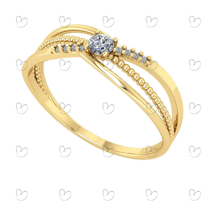 Anel Detalhado Bolinha com Diamantes Ouro 18k