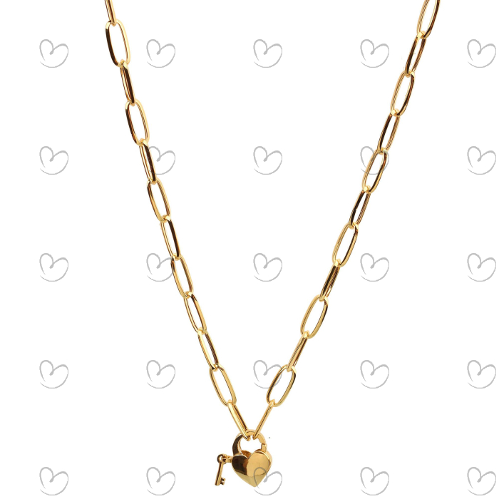 Gargantilha Cartier com Fecho Coração Cadeado 45cm Ouro 18k