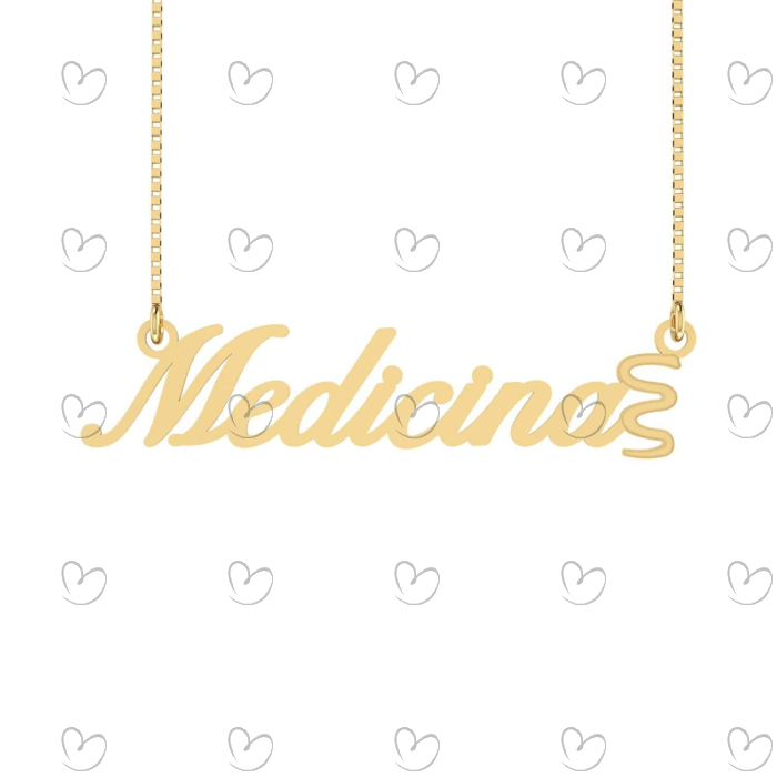 Gargantilha em ouro amarelo, com nome de profissão, essa linda gargantilha de Medicina com símbolo perfeita para presentear um formando.