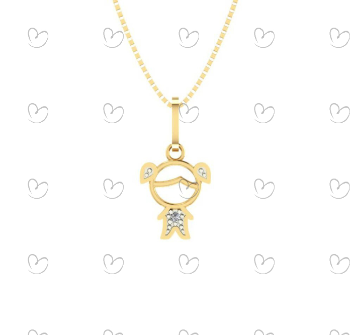 Pingente em ouro amarelo de Menina com 2 chuquinhas no tamanho mini e cravejado com 1 zircônia.