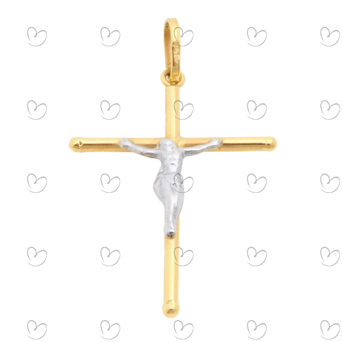 Pingente de ouro amarelo crucifixo com Cristo 20mm x 28mm